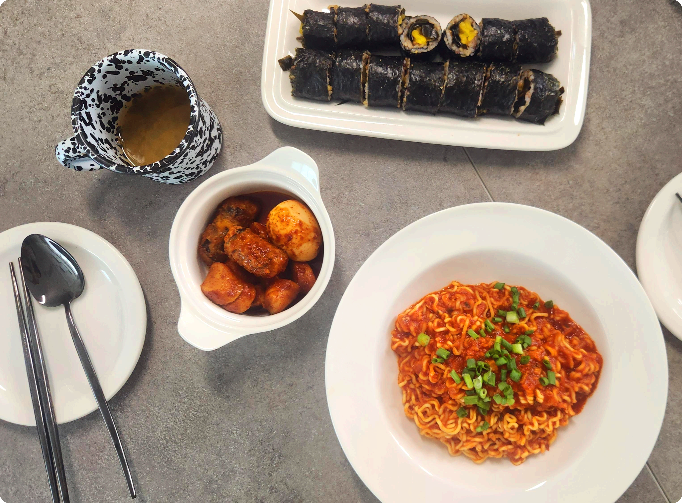 다시마김밥>토마토라면>계란볶이순으로 맛있었습니다.