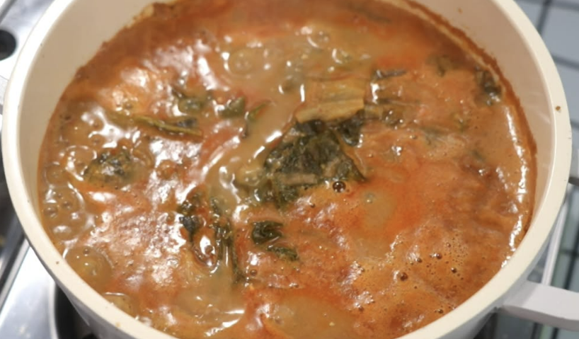 - 국물에 재운 우거지, 시래기 넣고 끓인 뒤 고추·깻잎·방아잎·제피가루 넣고 한소끔 끓이면 완성!