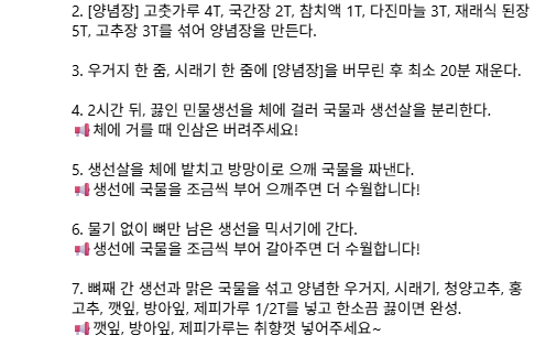 - 우거지, 시래기에 양념장 버무려 20분 이상 재우기.