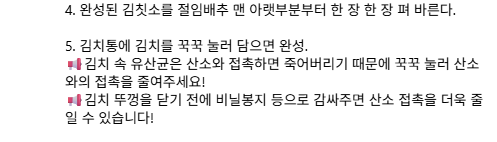 📢 김치는 산소와의 접촉을 최소화해야 유산균이 잘 살아남습니다.