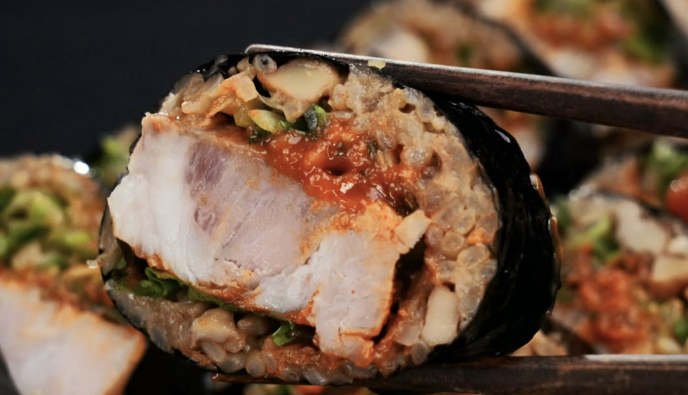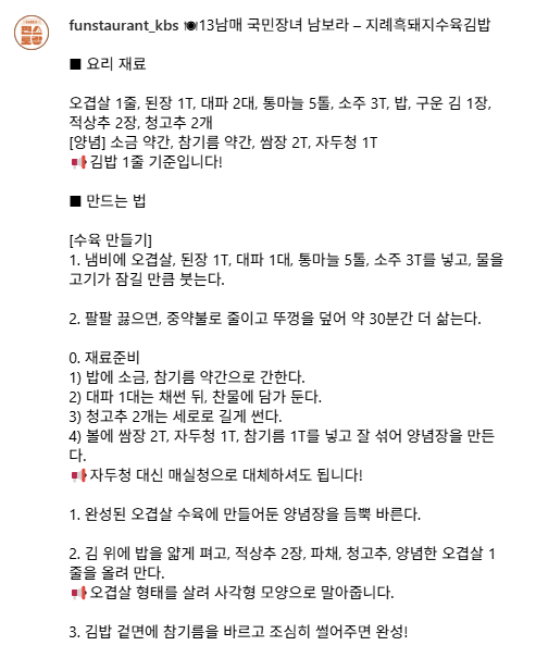 남보라의 편스토랑 공식 레시피, 지례흑돼지수육김밥! 수육과 김밥의 만남, 쌈장 자두청 양념으로 감칠맛을 더한 특별한 김밥 만드는 법을 소개합니다.