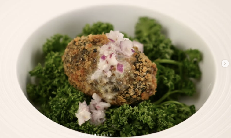 - 접시에 생파슬리를 깔고, 크로켓을 올린 뒤 소스를 곁들이면 완성!