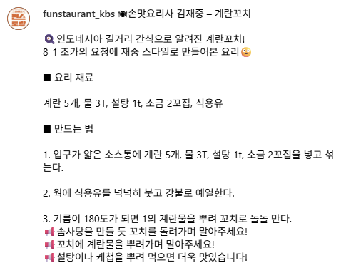 | 편스토랑 손맛요리사 김재중 – 계장 🍳 계란쌈장 레시피 (1) | 2025.09.17 |