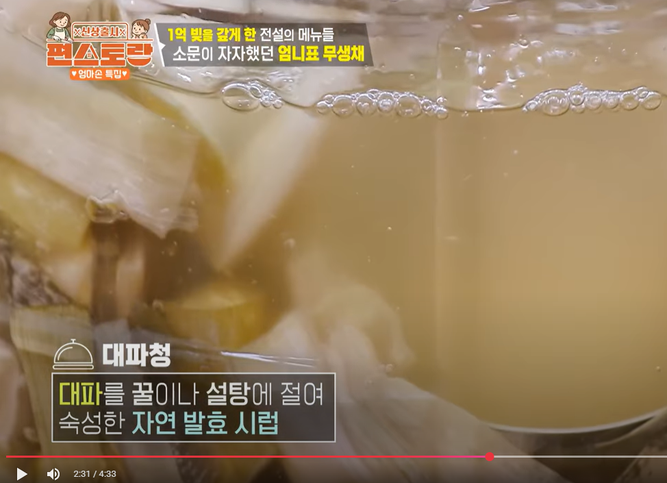 "대파청은 설탕과 발효가 어우러져 요리에 넣으면 풍미가 예술이에요."