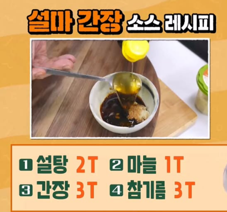 - 볼에 설탕 2T, 다진마늘 1T, 양조간장 3T, 참기름 3T를 넣고 섞는다.