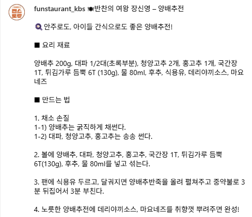 👩🍳 편스토랑 공식 레시피