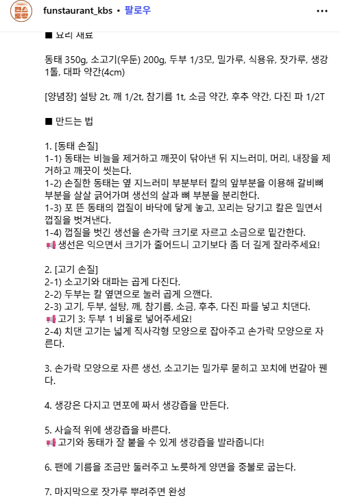 | 편스토랑 윤종훈 – 궁중 동태전 레시피 (0) | 2025.09.29 |
