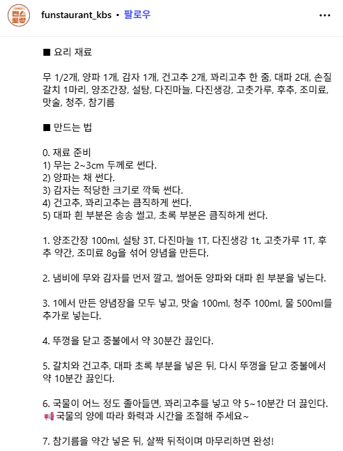 | 편스토랑 김재중 – 빨간왕갈비탕 레시피 (0) | 2025.09.30 |