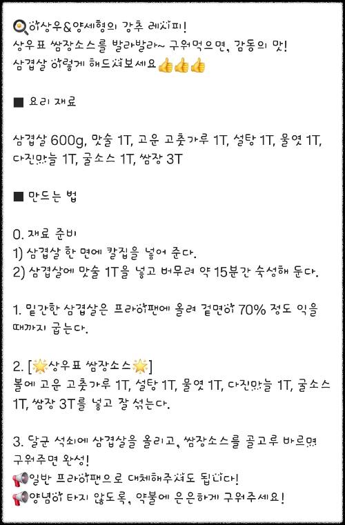 🍳 이상우 & 양세형이 강력 추천하는 특별한 쌈장삼겹살!