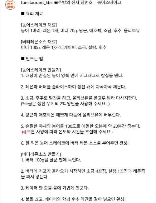 🍽 주방의 신사 장민호 – 농어스테이크 레시피