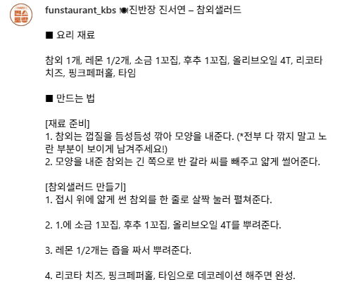 편스토랑 진서연표 참외샐러드 레시피! 여름 제철 과일 참외로 만든 상큼한 샐러드. 레몬, 리코타 치즈, 올리브오일로 고급 레스토랑 느낌까지 낼 수 있는 초간단 레시피를 만나보세요.