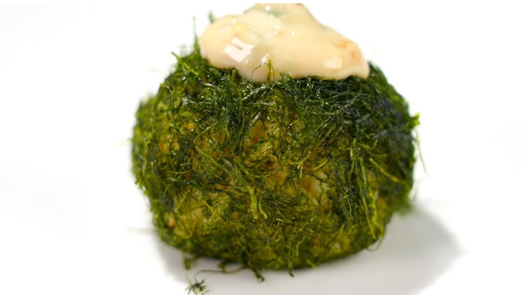 트레이에 감태를 펼친 뒤, 동그랗게 만든 주먹밥을 굴려 감태를 묻혀준다.