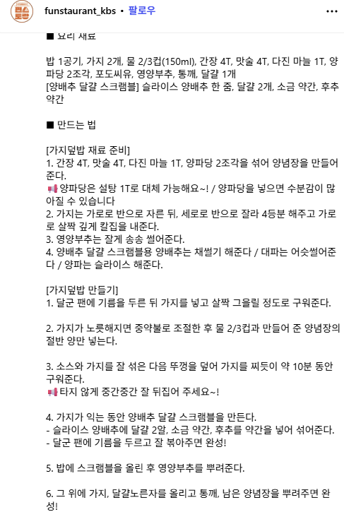 편스토랑 윤유선의 가지덮밥 레시피를 소개합니다. 장어덮밥처럼 고급스럽고 부드러운 가지덮밥을 간단하게 만드는 법을 정리했습니다.