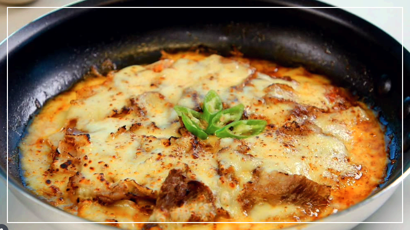 숙주, 김치, 차돌박이, 모차렐라 치즈로 완성되는