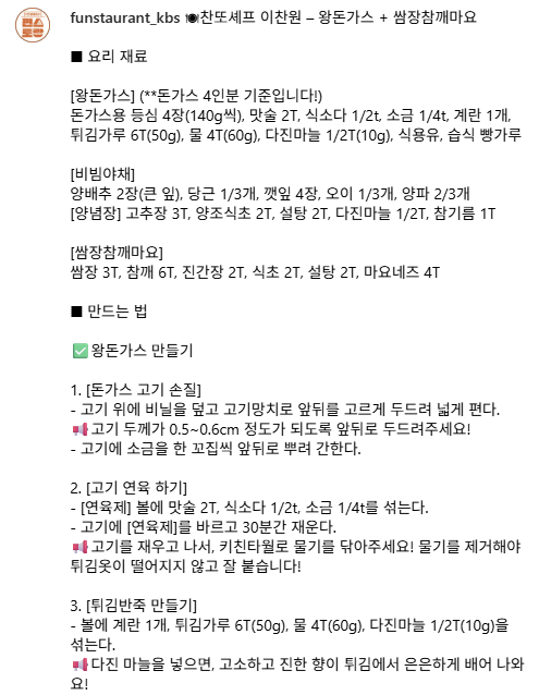 편스토랑 찬또셰프 이찬원의 왕돈까스와 쌈장참깨마요 소스 레시피를 소개합니다. 겉은 바삭하고 속은 촉촉한 왕돈가스와 고소한 참깨마요 소스의 조합으로, 식당 부럽지 않은 완벽한 한 끼를 만들어보세요.