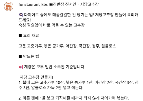 다이어트 중에도 매콤하고 칼칼하게! 숙성 없이 바로 즐기는 진서연 저당고추장 레시피, 집에서 간편하게 만들어보세요.