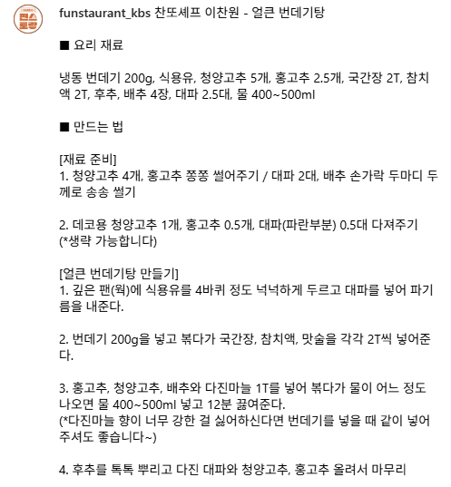 | 편스토랑 이찬원 – 불번데기탕 레시피 (0) | 2025.10.15 |