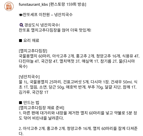 | 편스토랑 이찬원 – 양념피조개 레시피 (0) | 2025.10.15 |