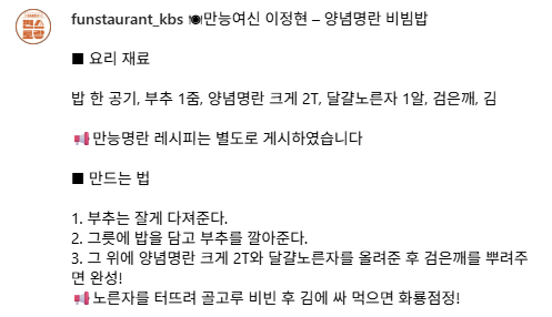 | 편스토랑 이정현 – 양념명란 레시피 (0) | 2025.10.20 |