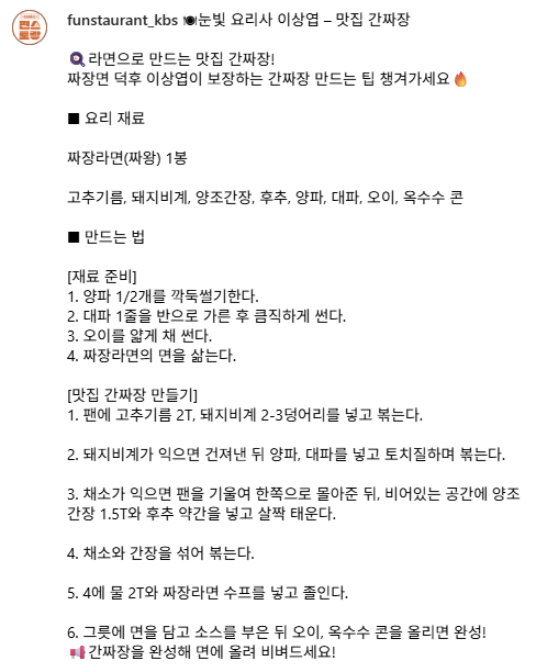 | 편스토랑 한지혜 팽이짜장면 레시피 (0) | 2025.10.27 |