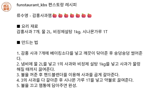 감홍사과로 만드는 편스토랑 공식 사과잼 레시피! 류수영(어남선생)이 알려주는 촉촉한 감홍사과잼 만들기, 시나몬 한 스푼으로 맛을 더해보세요.