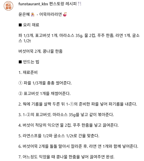 편스토랑 윤은혜 어묵마라라면 레시피 정리. 마라소스와 라면의 얼얼한 맛이 더해진 초간단 라면 변신!