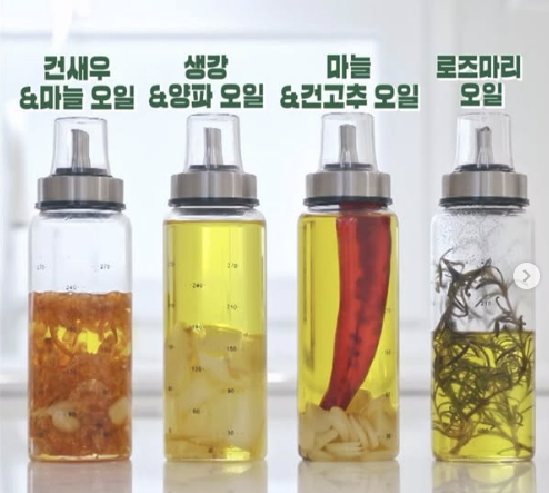 편스토랑 박탐희 금손 셰프의 수제 오일 5종 만드는 법을 소개합니다. 생강양파오일, 레몬딜오일, 로즈마리오일, 마늘건고추오일, 마른새우마늘오일까지! 요리에 풍미를 더해보세요.