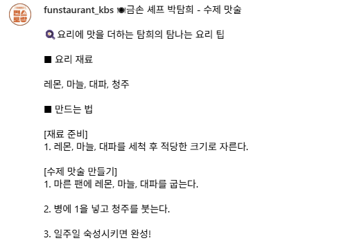 편스토랑 박탐희 셰프의 수제 맛술 레시피를 소개합니다. 레몬, 마늘, 대파, 청주만 있으면 깊은 감칠맛을 더하는 맛술을 집에서 간단하게 만들 수 있어요.