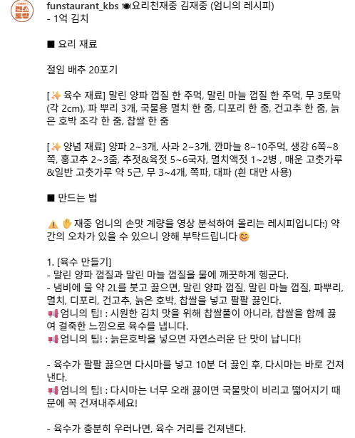 편스토랑 김재중의 1억 김치 레시피 공개! 시원하고 달콤한 육수와 풍부한 양념, 배추 속까지 완벽한 김치 만들기 방법을 상세히 안내합니다. 모바일 최적화, 쉽게 따라할 수 있는 단계별 레시피 포함.