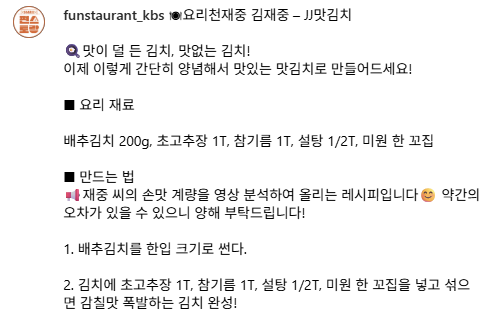 | 편스토랑 김재중 - 1억 김치 레시피 유만순 엄니 1억김치 (0) | 2025.10.31 |