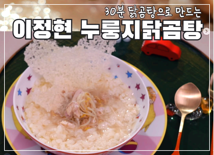 편스토랑 이정현의 따뜻한 누룽지 닭곰탕 레시피입니다. 고소한 누룽지와 진한 닭곰탕의 조합으로 속을 든든하게 채워보세요. 초간단 3단계로 완성되는 집밥 레시피!