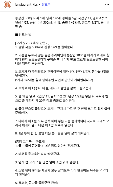 | 편스토랑 송가인 – 진도식 육회 낙지탕탕이 레시피 (0) | 2025.11.05 |
