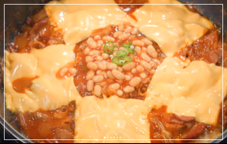 장민호표 부대볶음 레시피! 베이컨, 스팸, 소시지와 사골 육수, 체다치즈까지 더해진 완벽한 밥도둑 레시피를 소개합니다. 라면사리와 베이크드빈으로 든든하게 즐겨보세요.