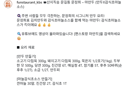 편스토랑 문정희의 시그니처 메뉴 ‘마만두(만두X감식초마늘소스)’ 만드는 법을 정리했습니다. 김치만두와 감식초마늘소스의 조화가 완벽한 집밥 레시피입니다.