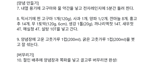 - 까나리액젓, 새우젓, 매실청, 설탕