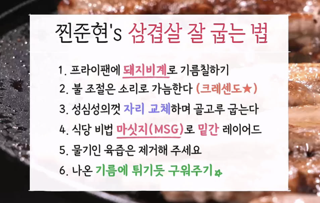 김준현 삼겹살 굽기의 핵심 한 줄 정리