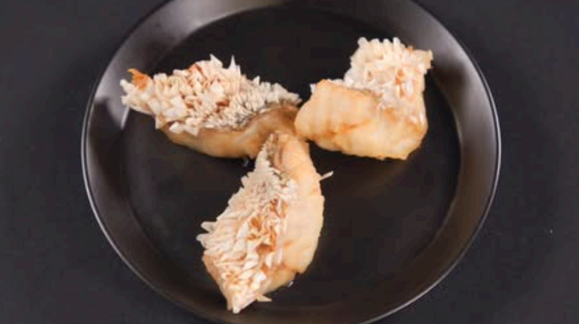 장민호가 선보인 호마카세 스타일 생선튀김입니다.