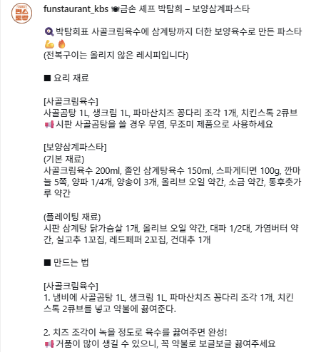 편스토랑 박탐희 보양삼계파스타 레시피를 정리했습니다. 사골크림육수와 삼계탕 육수를 더한 진한 보양 파스타 만드는 법과 재료, 꿀팁까지 한 번에 확인하세요.