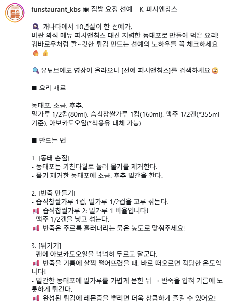 저렴한 동태포로 재해석한 K-피시앤칩스 레시피를 공개했습니다.