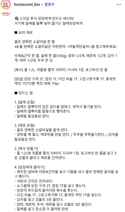 | 편스토랑 이정현 마늘폭탄갈비 레시피 (0) | 2026.03.14 |