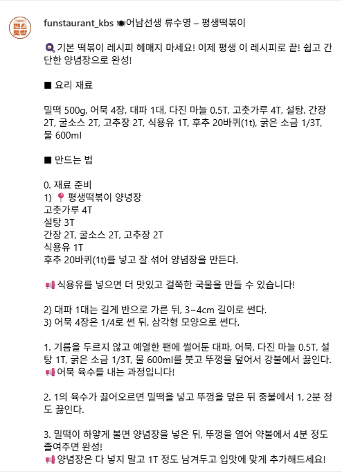 “편스토랑 류수영 평생떡볶이 레시피 공개! 기본 양념장만 알면 실패 없는 간단한 떡볶이 완성. 밀떡, 어묵, 대파로 만든 어남선생표 인생 떡볶이 레시피를 지금 확인하세요.”
