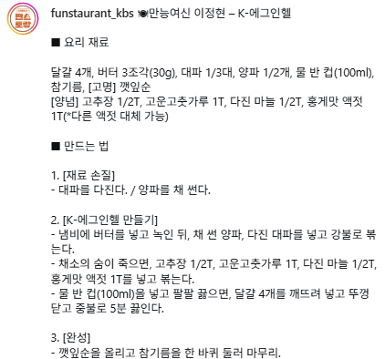편스토랑 이정현 K-에그인헬 레시피를 집에서 쉽게 만드는 방법을 정리했습니다. 매콤하고 고소한 한국식 에그인헬 황금레시피와 꿀팁까지 확인하세요.