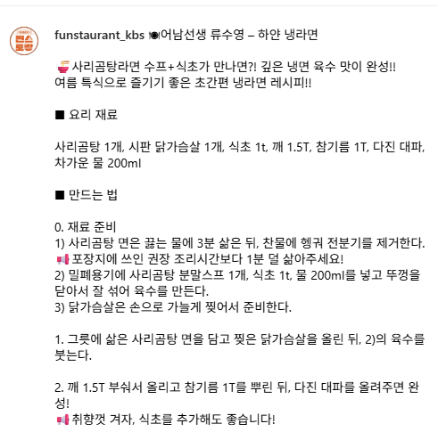🍜 사리곰탕라면 + 식초 = 냉면 같은 깊은 맛!
