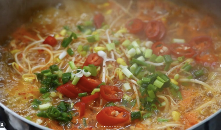 - 콩나물이 익으면 굵은 고춧가루 1/2T, 굵은 소금 1/2T, 송송 썬 홍고추·쪽파를 넣고 한소끔 끓이면 완성!